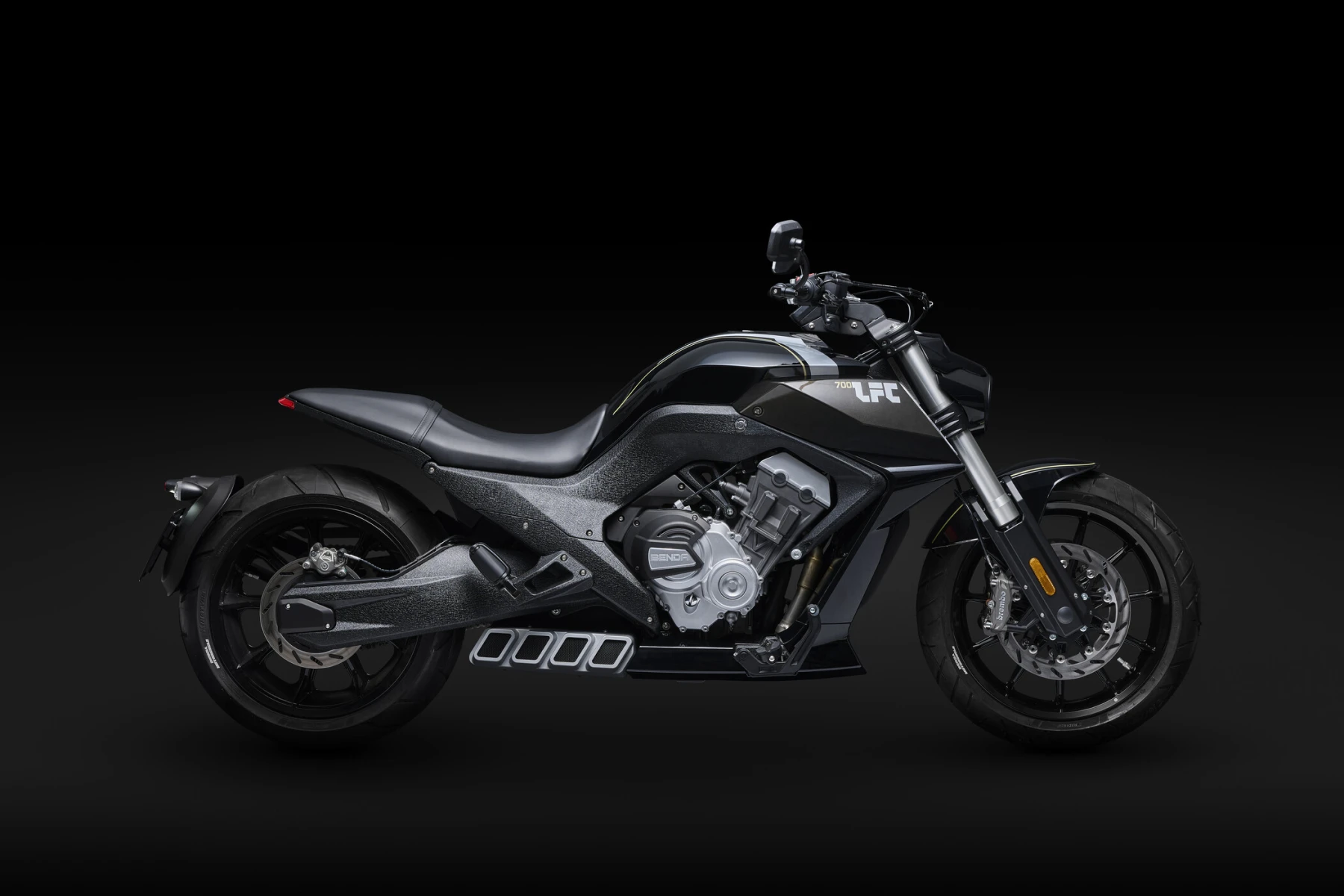 Benda LFC700 představuje vrchol konstrukce sportovních cruiserů, který hladce integruje vlastní agresivní design a pokročilou technologii podpořenou výkonným řadovým čtyřválcovým motorem o výkonu 80 koní, brzdami Brembo s ABS, vysoce výkonným odpružením KYB a nápadnou jednostrannou kyvnou vidlicí s 310mm zadní pneumatikou, je stvořen k dominanci všude kde se objeví. Jeho plnobarevný TFT displej a různé jízdní režimy zajišťují vzrušující zážitek z jízdy. "Throttle Up, Rule Down" ztělesňuje podstatu tohoto motocyklu – odvážný, výkonný a připravený dobýt jakoukoli silnici.
