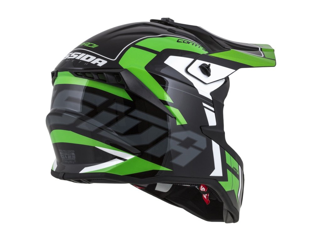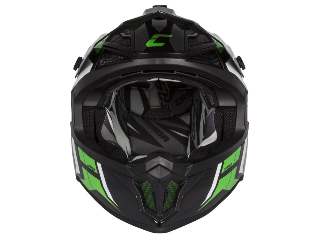 přilba Cross Pro II je nástupce předchozí verze uvedený pro sezonu 2020 v grafické řadě Contra. Skolaminátová skořepina, nastavitelný kšilt s bočními slitinovými a jedním středovým plastovým šroubem pro možnost nastavení polohy a možnost šetrnějšího sklopení kšiltu v případě kontaktu s překážkou. Interier přilby disponuje nově jako první model v nabídce systémem odnímatelných lícnic Cassida Safety Opening System (Cassida SOS) a tištěnou grafikou interieru přilby. Dobře omyvatelný vnitřek přilby a ventilační systém s bradovou ventilací disponující vyměnitelným uhlíkovým filtrem jsou detaily doplňující celek.