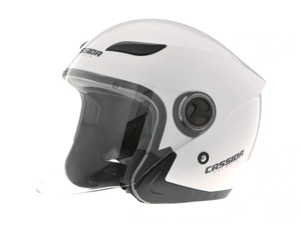 Otevřená polykarbonátová přilba v bílé barvě nejen pro skútry. Helma disponuje dlouhým čirým plexi. Stylová reflexní odrazka v týlové části přilby. Plně odnímatelná a pratelná výstelka z prodyšného materiálu. Zapínání řemínku pomocí mikrometrické přezky