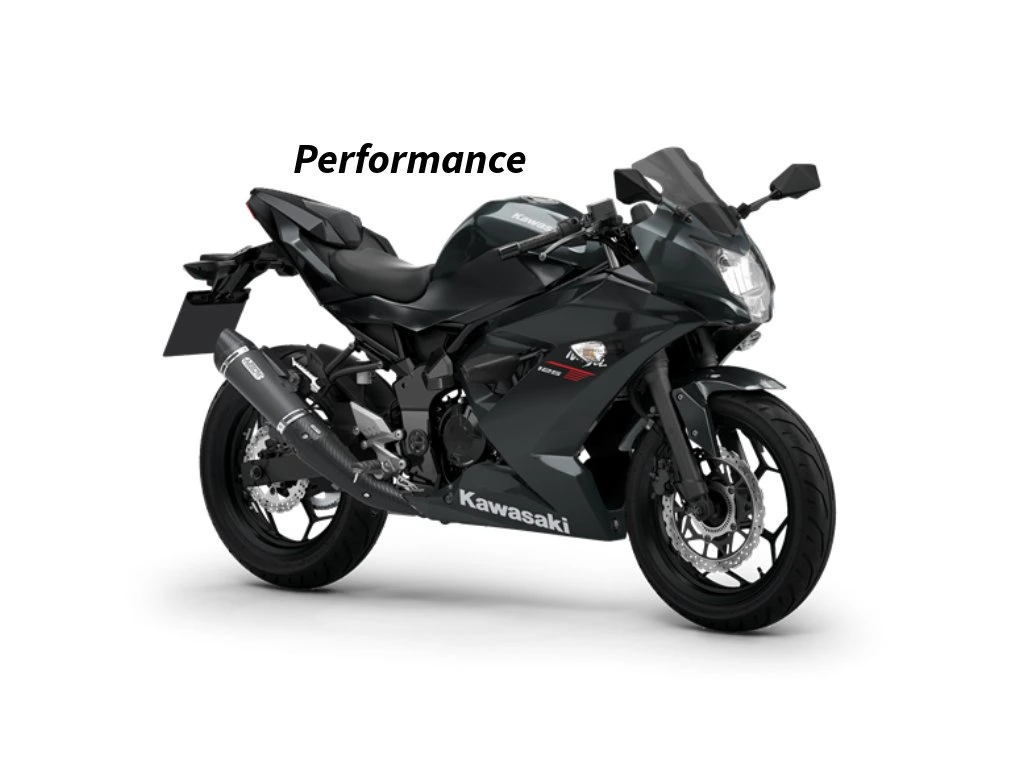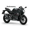 Výbava PERFORMANCE: má oproti základnímu modelu navíc sportovní laděný výfuk Arrow, kryt sedadla spolujezdce v barvě motocyklu, padací protektory a stylové kouřové plexi.