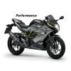 Výbava PERFORMANCE: má oproti základnímu modelu navíc sportovní laděný výfuk Arrow, kryt sedadla spolujezdce v barvě motocyklu, padací protektory a stylové kouřové plexi.