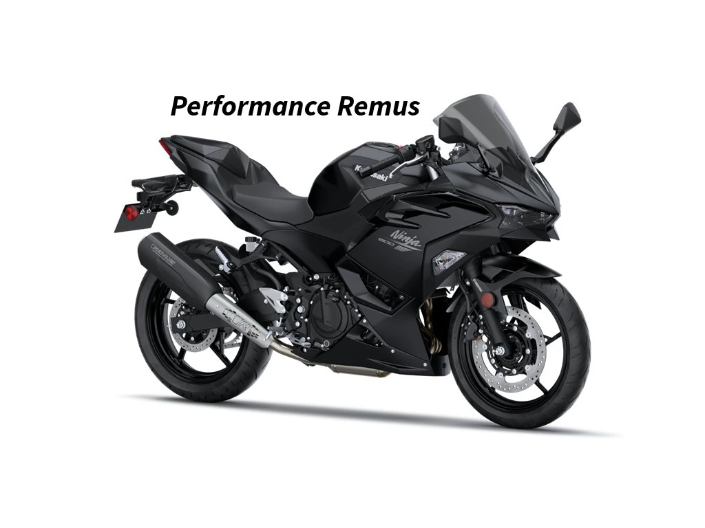 Výbava PERFORMANCE Remus: vyšší sportovní kouřové plexi, kryt sedadla spolujezdce, tank pad, koncovka výfuku Remus
