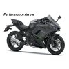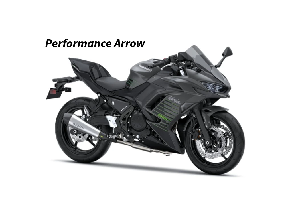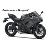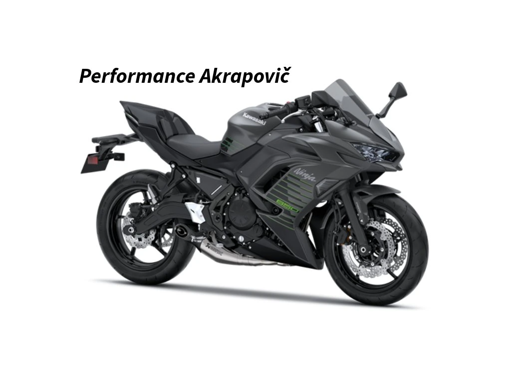 Výbava Performance: Ninja 650 Performance má navíc oprati standardní verzi kouřové plexisklo, stylový gelový tankpad, s motocyklem barevně sladěný kryt sedadla spolujezdce a o sportovní zvuk a styl se postará kompletní výfukový systém Arrow/Akrapovič.
