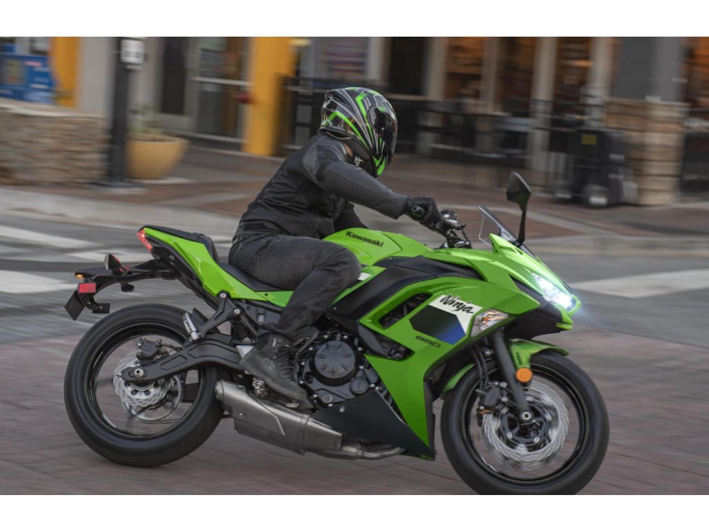Nový ostřejší design motocyklu Kawasaki Ninja 650 mu nyní dodává sportovnější vzhled a ještě více evokuje rodinnou příslušnost ke strojům Ninja. Tento elegantní a sportovní design vzbuzuje emoce a vášeň u jezdců.