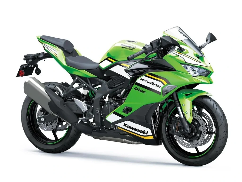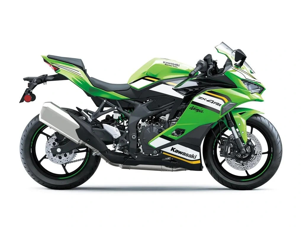 Společnost Kawasaki hrdě představuje revoluční novinku v kategorii sportovních motocyklů o objemu 400ccm. Jedná se o ostrý nízkoobjemový supersport Ninja ZX-4R! Tento motocykl pohání vysokootáčkový, řadový čtyřválcový řadový motor DOHC o objemu 399ccm plněný náporovým sáním RAM-AIR. Motor s nejvyšším výkonem ve své třídě (77 koní) je uložen v plnohodnotném, kompaktním příhradovém rámu typu Trellis. Celý balíček skvěle doplňuje přední vidlice Showa, s novou banánovou kyvnou vidlicí, s horizontálním zadním tlumičem a předními radiálními kotoučovými brzdami o průměru 290mm. Samozřejmostí je barevný TFT display a LED osvětlení. Základní varinta ZX-4R nemá oproti variantě RR quickshifter, lakování KRT a nastavitelný podvozek odvozený od superbiku ZX-10R.