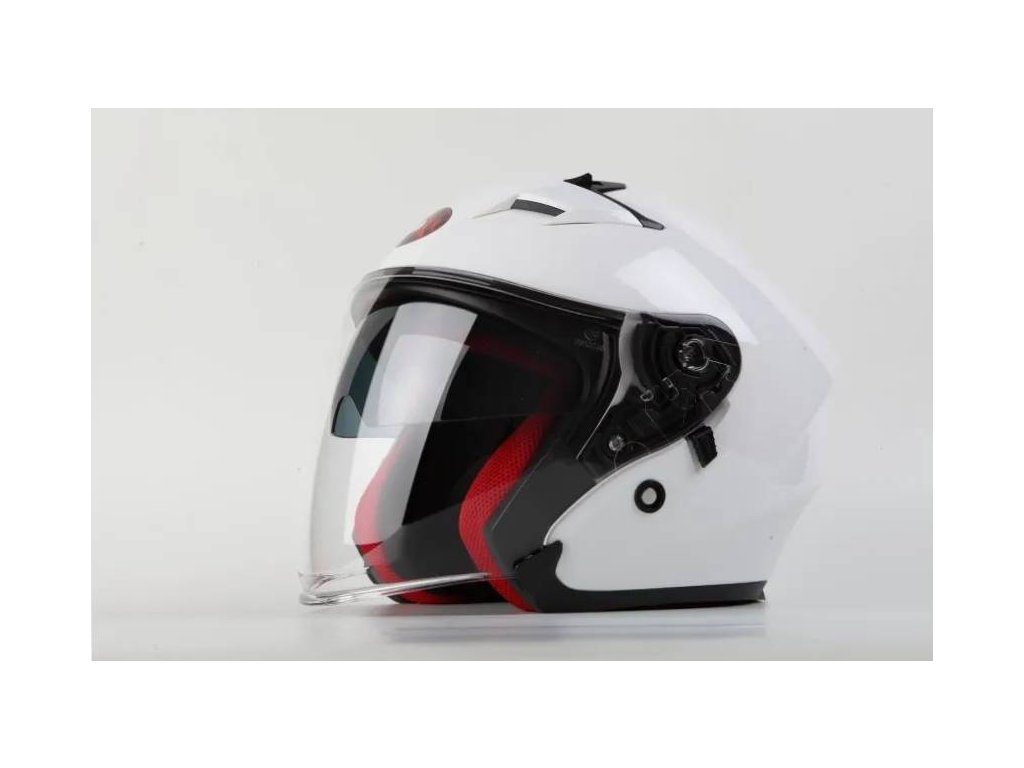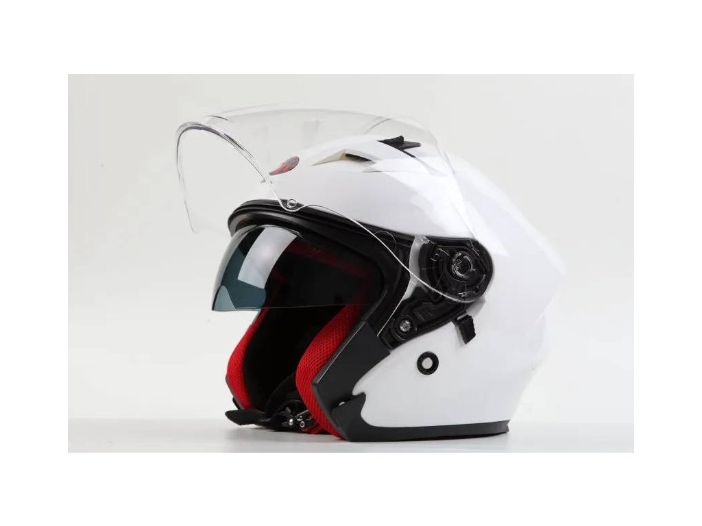 Otevřená helma se zaintegrovanou sluneční clonou. Skořepina HIGH TECH termoplastic ABS s plexi v úpravě proti poškrábání vhodná pro chopper a skůtry. Homologace ECE. Plně vyjímatelné a pratelné antialergické polstrování. Upínací řemínek s rychlospojkou.