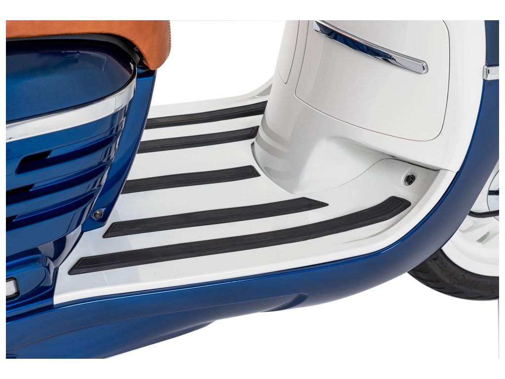 Vše ostatní je při starém - líbivý retro design doplňují moderní prvky jako motor s elektronickým vstřikováním paliva, pokročilý brzdný systém ABS, digitální informační panel, nechybí 12V zásuvka pro nabíjení vašeho smartphonu nebo uzamykatelné úložné prostory pod sedlem a ve středovém panelu. Po praktické stránce dále oceníte rovnou podlahu pro převoz větších nákladů nebo praktický háček pro zavěšení tašek.