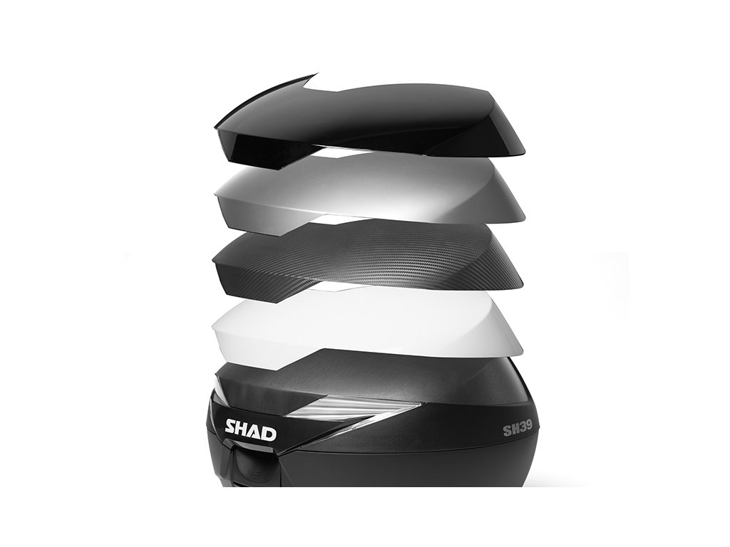 SH39 kufr nové generace střední třídy. Kapacita: 1 integrální + 1 otevřená helma. Dostupná opěrka, brzdové světlo a barvy k SH39. Včetně plotny.