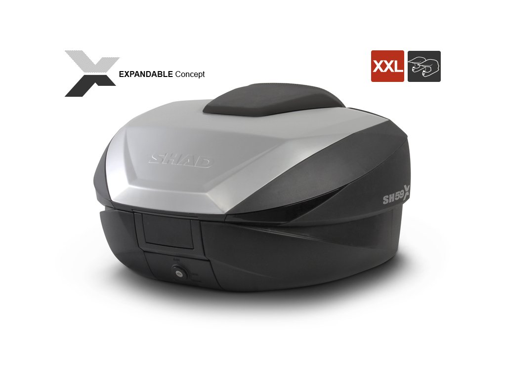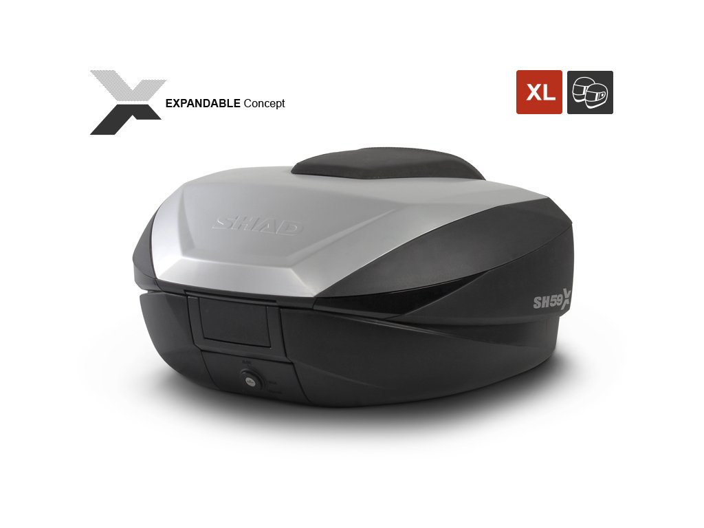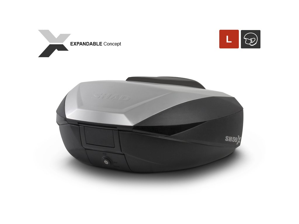 SH59X je rozšiřitelný kufr, jehož objem je možné upravit do tří velikostí (L, XL a XXL). (opěrka není součástí kufru)