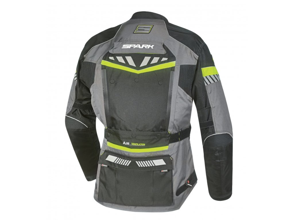 Polodlouhá textilní bunda Spark Roadrunner je třívrstvou variantou nejvyšší řady textilních bund se samostatně vyjímatelnou klimamembránou a teplou vnitřní podšívkou. Množství ventilačních otvorů zajišťuje maximální odvod horkého vzduchu a náporové ochlazování při vysokých teplotách. Protektory z paměťové pěny Viscofoam zajišťují maximální bezpečnost při zachování pohodlí za jízdy.