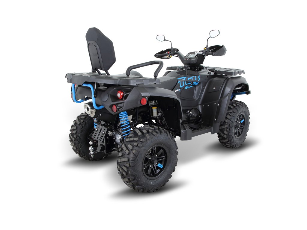 Sebevědomý design s moderními LED-matrix světlomety a Full-LED osvětlením, vylepšená automatická převodovka, prodloužený podvozek, silný motor, příjemné ovládání a výborné jízdní vlastnosti - nový TGB Blade 600i LTX EPS 4x4 má všechny předpoklady stát se opět jednou z nejoblíbenějších čtyřkolek střední třídy. Pod novým přitažlivým kabátem pracuje spolehlivý jednoválec s vysokou tažnou silou. Automatická převodovka má zesílenou konstrukci a japonské komponenty. Přední mřížka chladiče je odnímatelná pro usnadnění čištění. K tomu vynikající terénní vlastnosti, elektricky připojitelný pohon 4x4 se dvěma uzamykatelnými diferenciály, třírežimový posilovač řízení EPS, prodloužený podvozek se samostatnou sedačkou spolujezdce a mimořádně bohatá standardní výbava, ve které nechybí vodotěsný naviják 3000lbs, atraktivní alu disky, tažné zařízení nebo kvalitní nitrogenové tlumiče EVO.