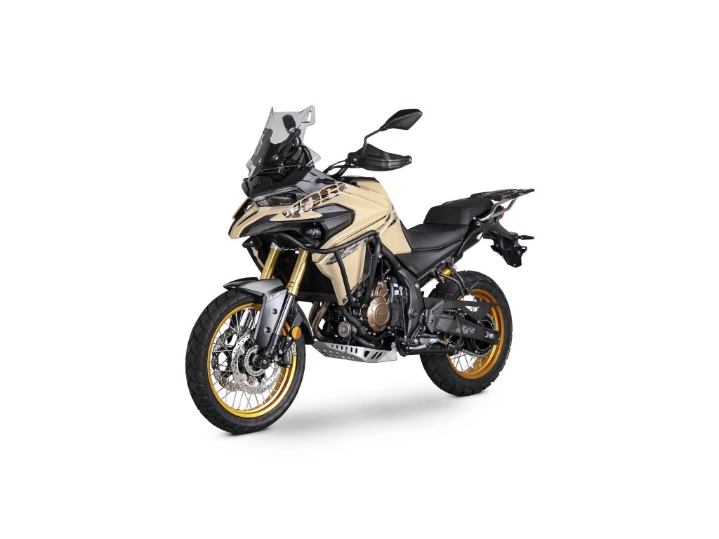 Ve standardní výbavě nechybí LED osvětlení včetně přídavných bodových světel, boční i středový stojan, USB konektor, 12V zásuvka a nastavitelné plexi, které lze pohodlně upravit přímo z místa řidiče. Motor je navíc chráněn hliníkovým krytem, který zvyšuje odolnost v náročném terénu.