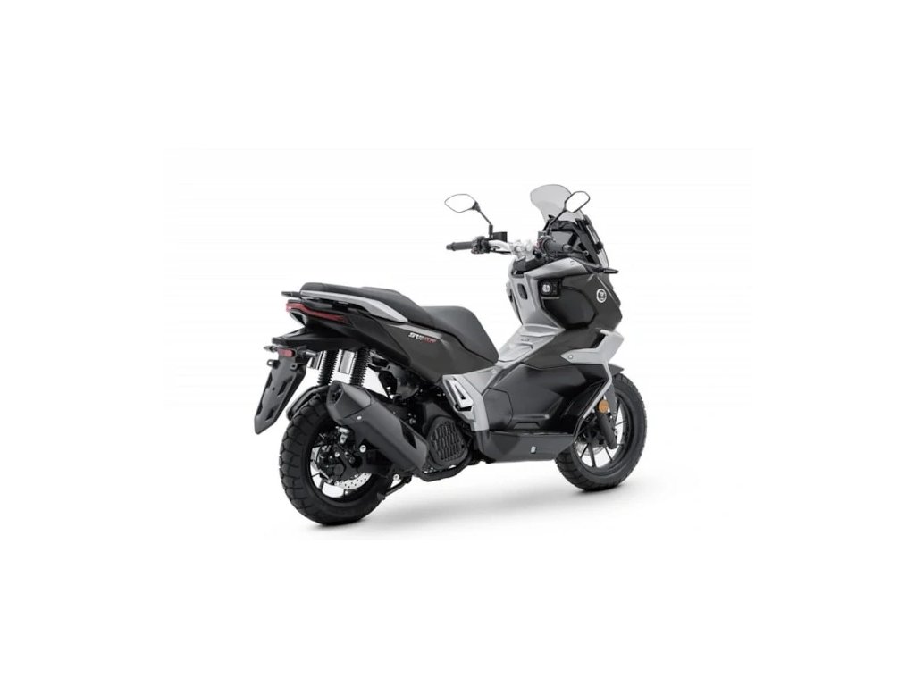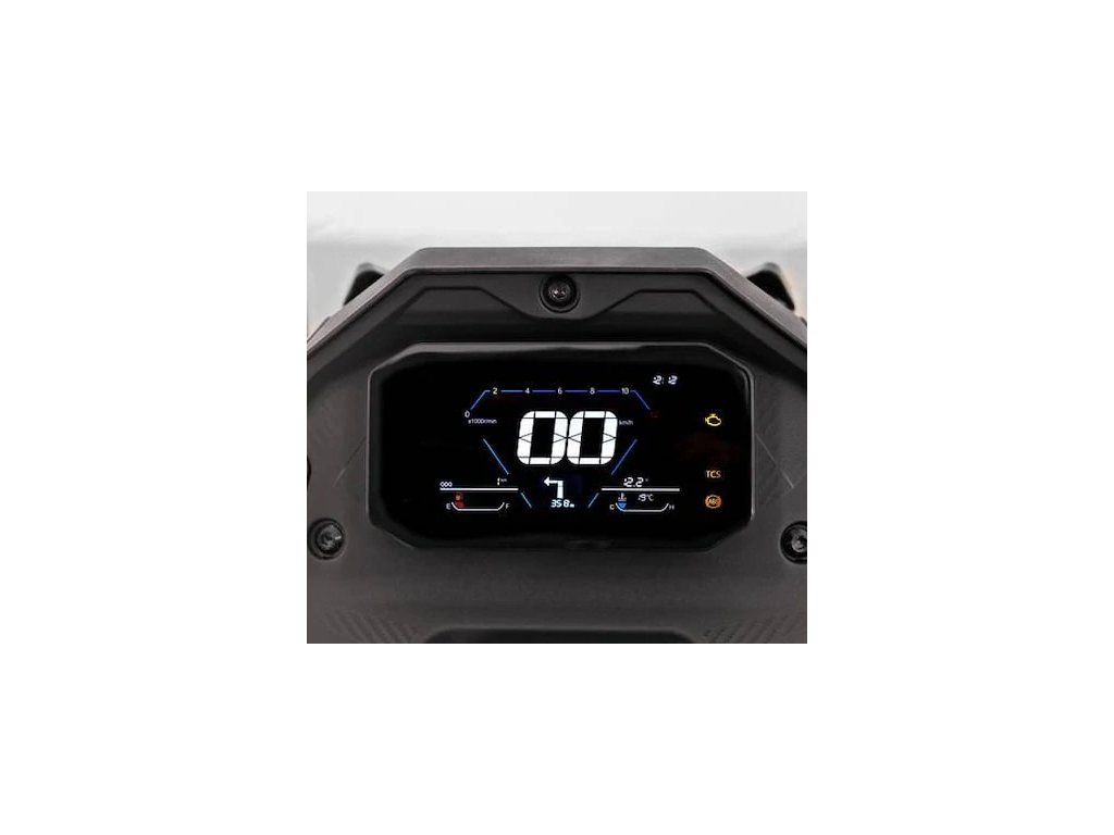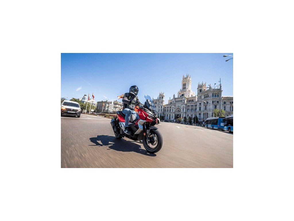 Jízda po silnici je stejně příjemná jako mimo ni – elektricky nastavitelné plexi je prvkem, který v této kategorii nabízí jen málokterý skútr. Součástí výbavy je také bezklíčkové startování, full LED osvětlení a 7palcová LCD přístrojovka s možností propojení s chytrým telefonem. Díky tomu lze zobrazovat notifikace, přehled hovorů a turn-by-turn GPS navigaci.