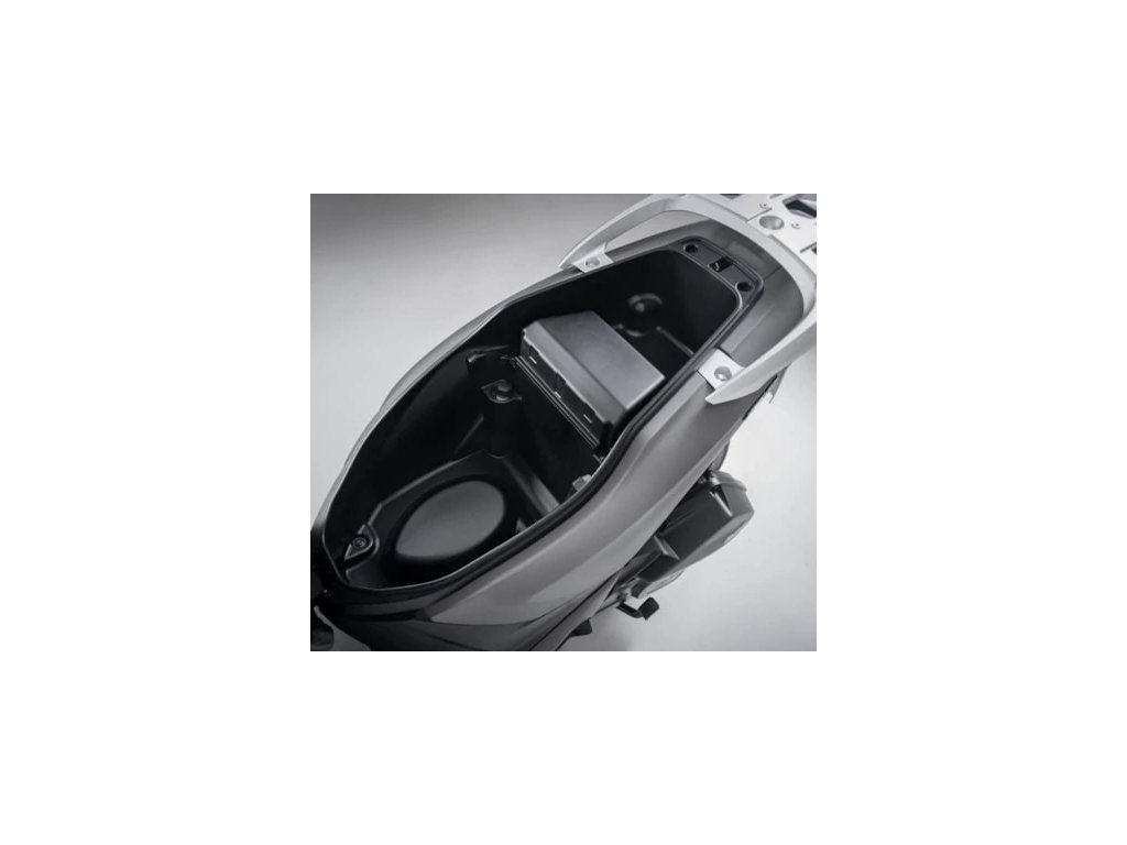 Pod sedlem je dostatek místa pro běžný nákup, případně jetku nebo menší integrální přilbu. A pro větší nákupy je už v základu zadní hliníkový nosič s 34litrovým kufrem. Drobnosti lze uložit do uzavíratelné přihrádky s USB v předním štítu.