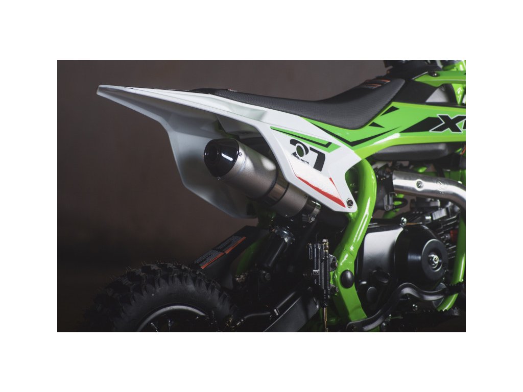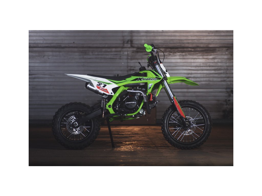 Motocykl XMOTOS - XB27 125cc 4t 14/12 má výkon 8kW, , sportovní výfuk, přední i zadní hydraulické kotoučové brzdy, masivní přední tlumiče, zadní odpružení s nastavitelnou tuhostí, elektrický i nožní startér, přední kolo 14 palců, zadní kolo 12 palců.