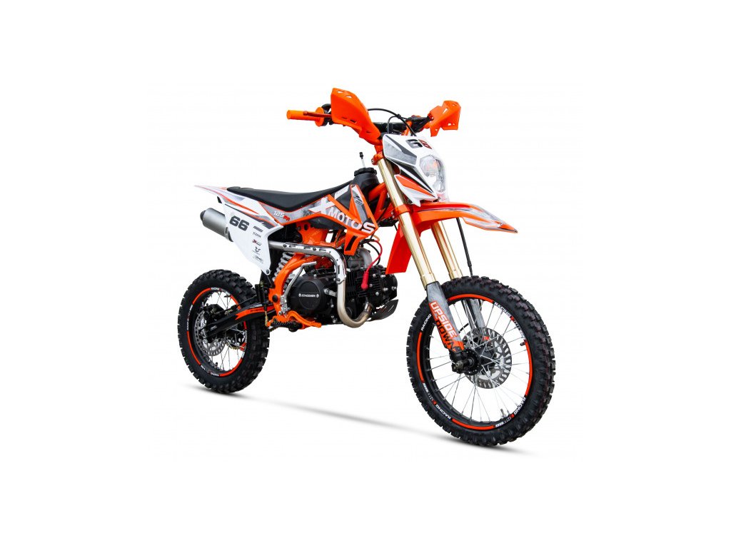 Motocykl XMOTOS - XB66 125cc 4t 17/14 je nový model s bohatou výbavou. Přední světlo, kryty rukou, reflexní prvky a díly v barvě motocyklu mu dodávají atraktivní vzhled. Má výkon 8kW,  sportovní výfuk, přední i zadní hydraulické kotoučové brzdy (zadní-nožní), masivní přední Up-side-down tlumiče, zadní odpružení s nastavitelnou tuhostí, přední kolo 17 palců, zadní kolo 14 palců.